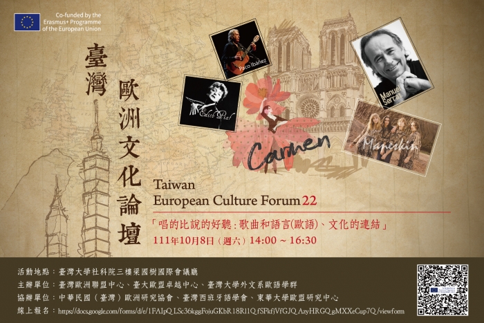 The 22nd Taiwan European Culture Forum: “The Sound of Singing is Better Than Speaking: The Connection Between Songs, European Languages, and Culture", welcome to register!
