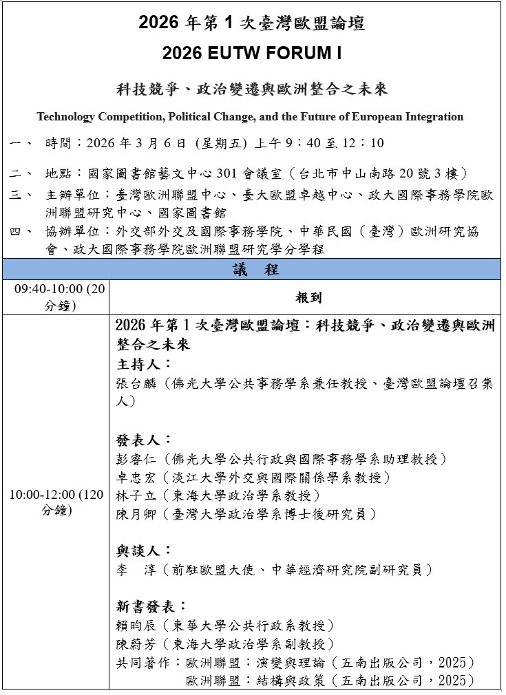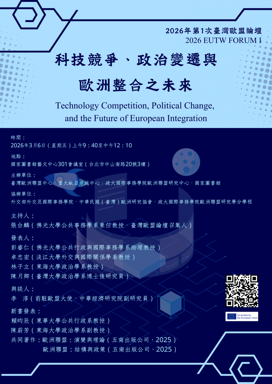 2026年第1次臺灣歐盟論壇:科技競爭、政治變遷與歐洲整合之未來