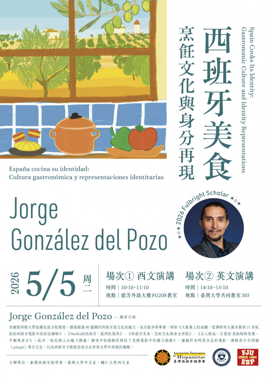 【演講】西班牙美食:烹飪文化與身分再現|講者:Jorge González del Pozo(5月5日),歡迎踴躍報名參加!